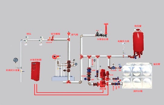 當水壓低于設定值時,電接點壓力表給消防穩壓泵控制箱傳送啟動信號,當壓力大于設定值時電接點壓力表向控制箱傳送停泵信號。
